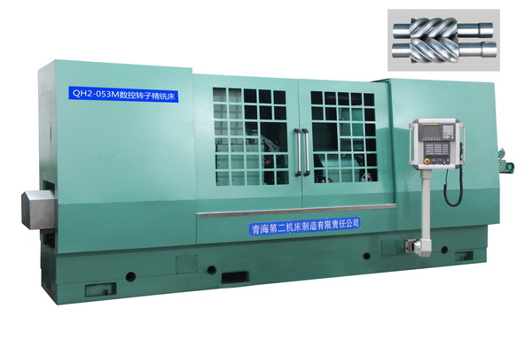 QH2-053M數控螺旋轉子銑床采用成型銑刀盤專門銑削加工螺桿轉子、螺桿等螺旋面工件的高效率專用精密機床,主要適用于空壓機、冷凍機、工業(yè)泵等行業(yè)中、小規(guī)格螺旋轉子的精銑削加工。