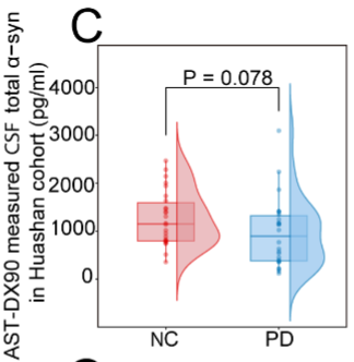 在本研究中,Dx-90平臺為揭示PD病理機制提供了重要支持?;趩畏肿用庖邫z測技術檢測腦脊液(CSF)中的總α-syn水平變化:結果顯示PD患者CSF中總α-syn水平降低,這可能反映了腦內α-syn聚集的增加。